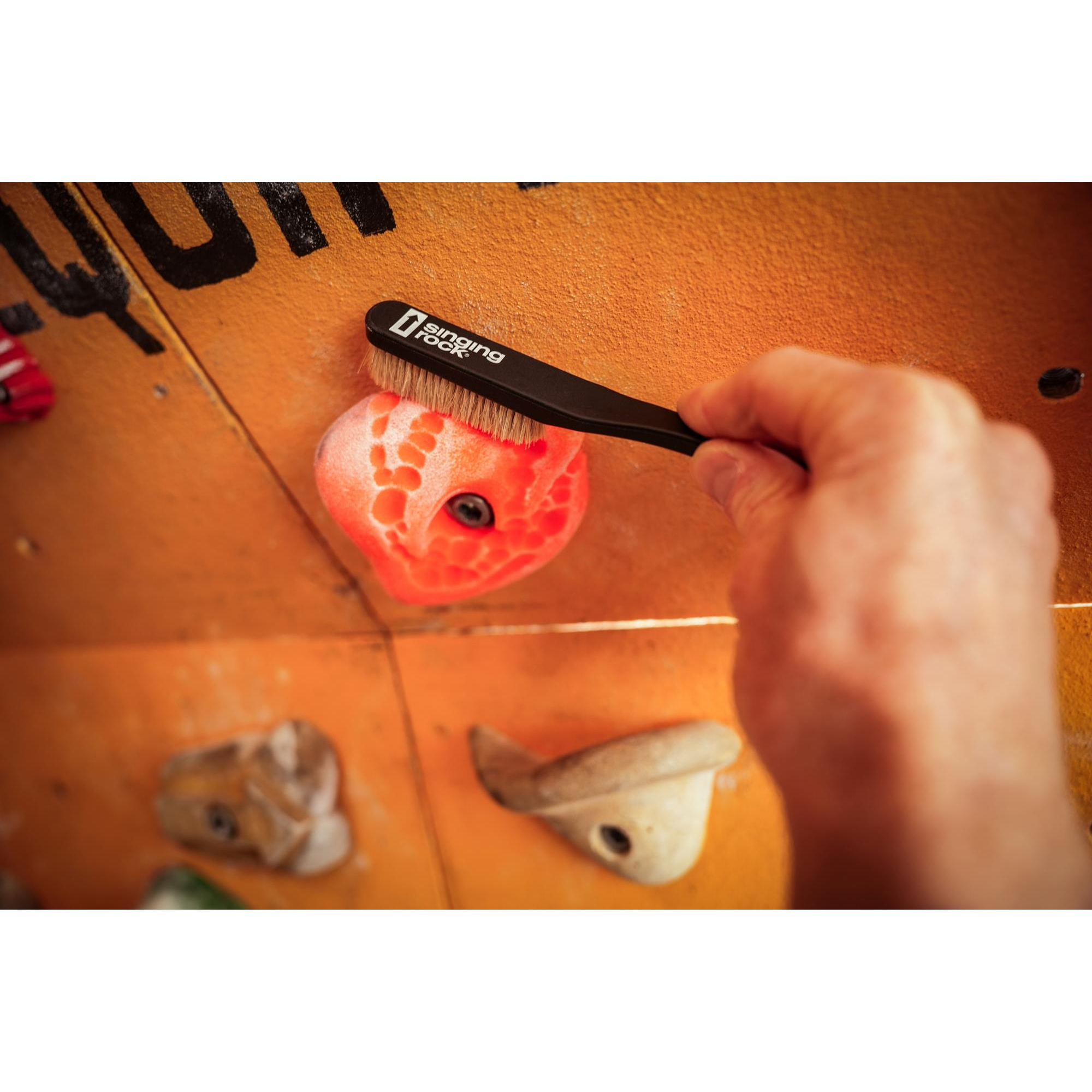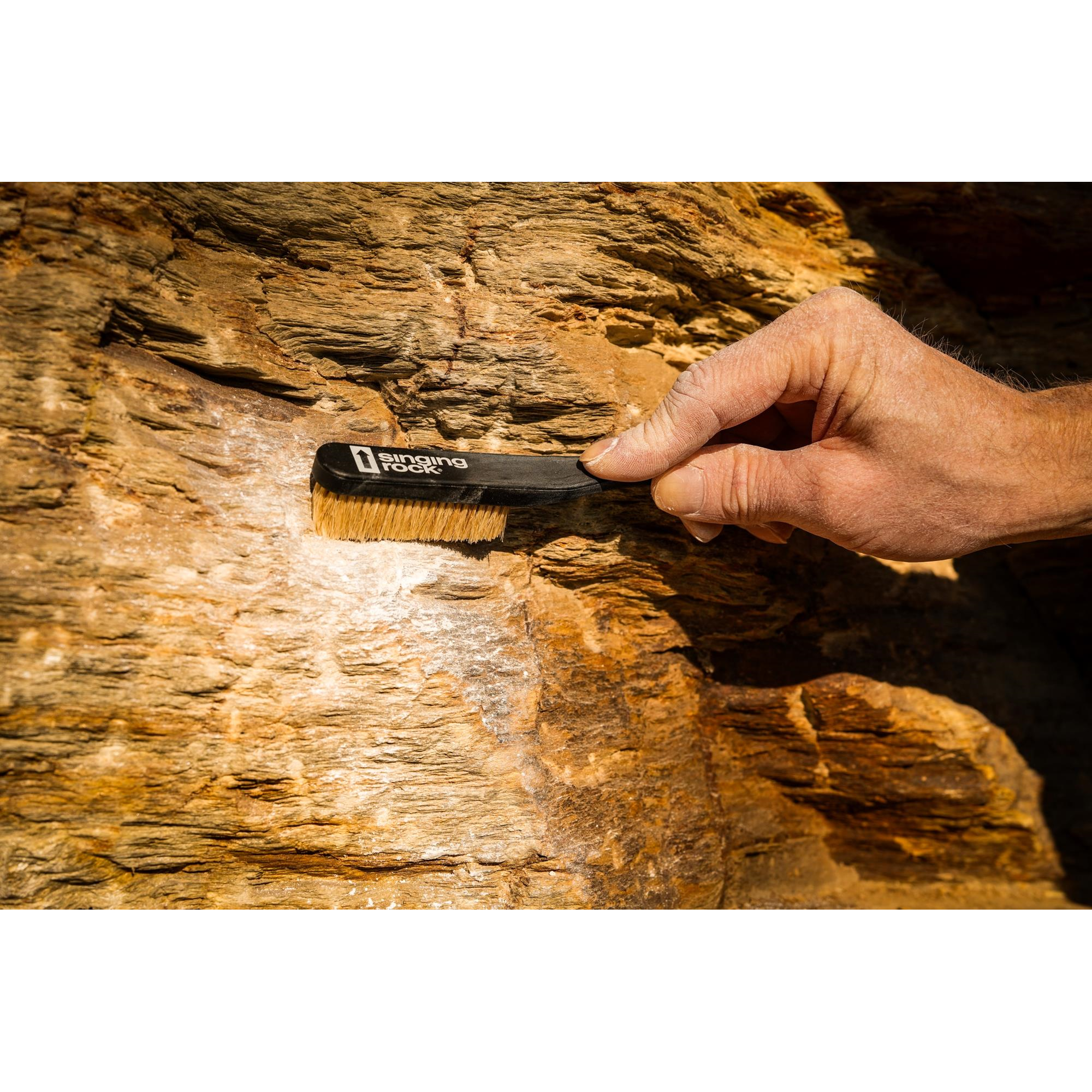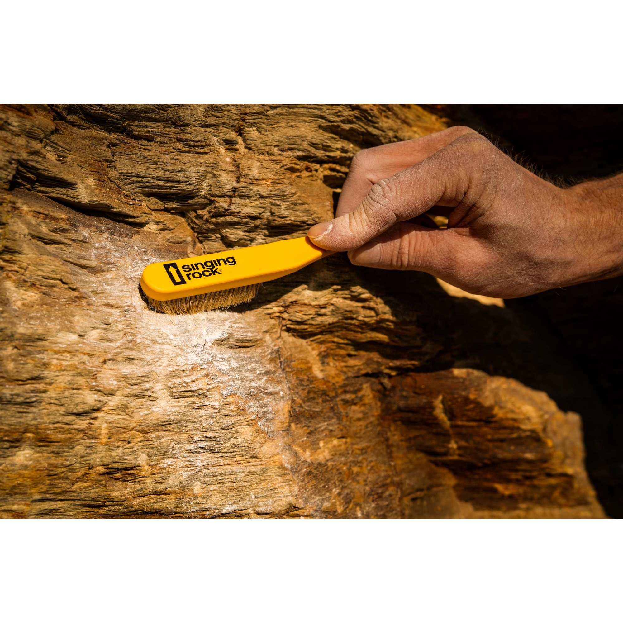 La clave del éxito en una vía difícil son la fuerza, la técnica y las presas bien limpias. La fuerza y la técnica dependen de ti. El cepillo de escalada CHALK BRUSH te ayudará a limpiar las presas.