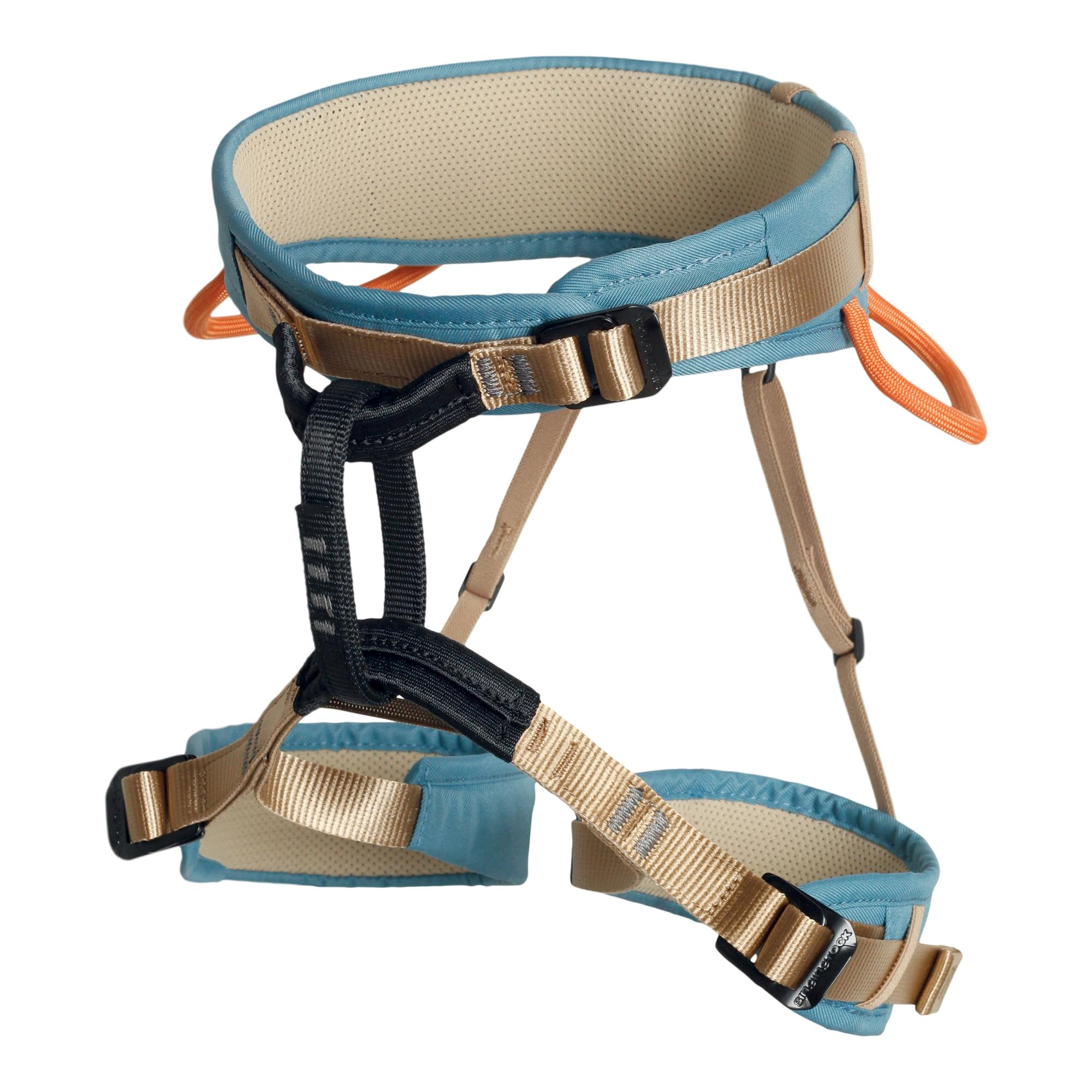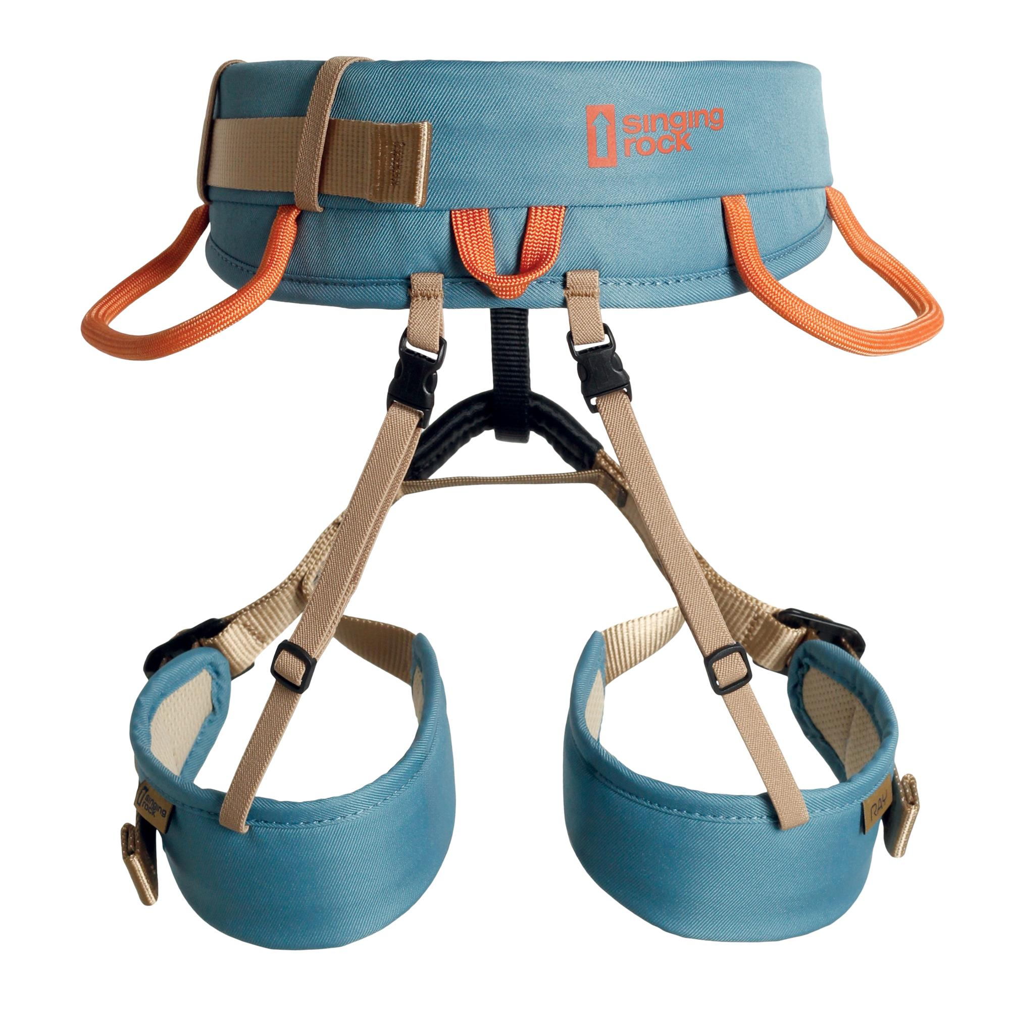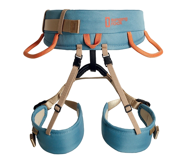 • 3 Singing Rock hebillas dobles de acero en el cinturón lumbar y en las perneras permiten un ajuste óptimo del arnés para cualquier actividad de escalada
